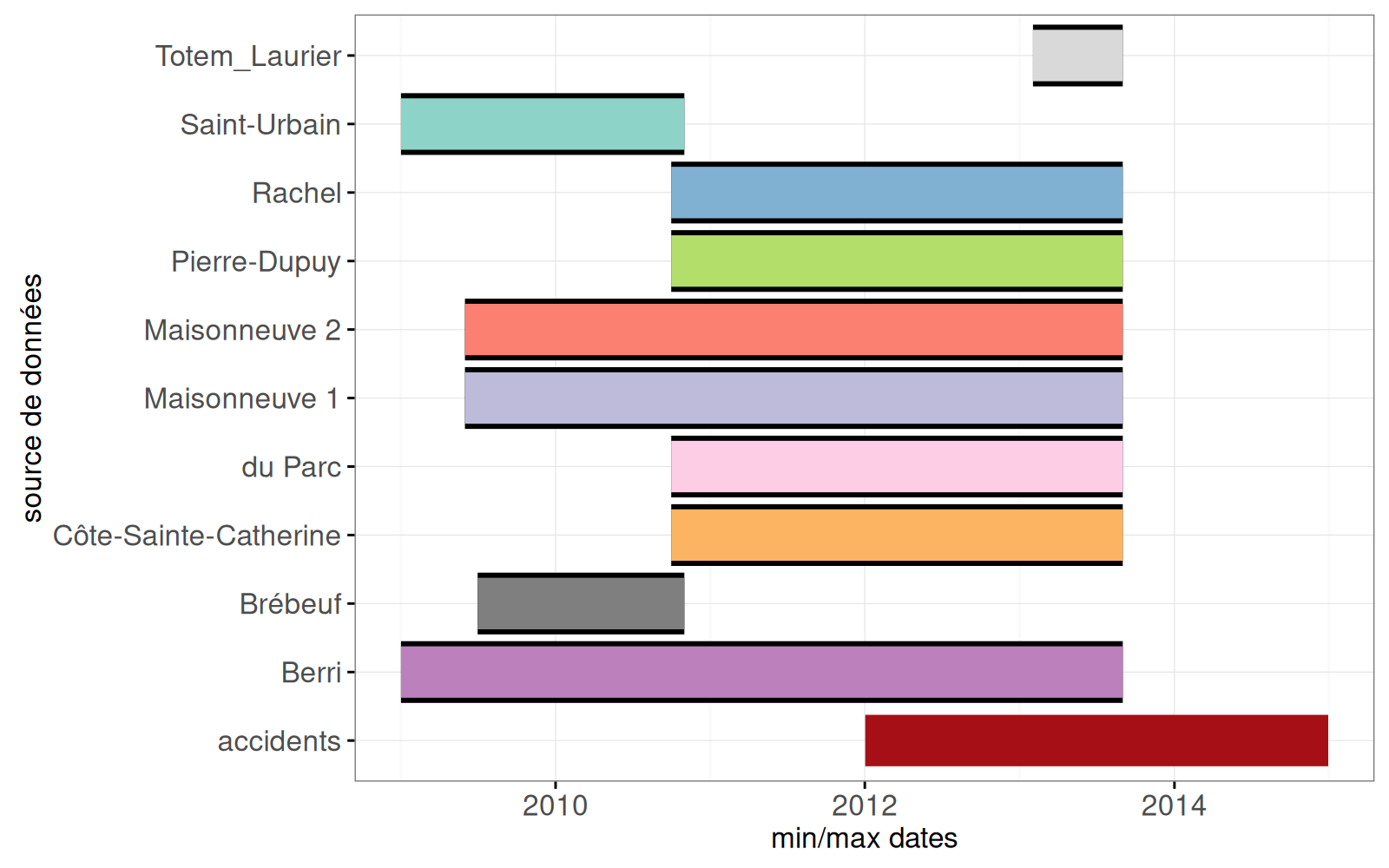 montreal.bikes$accidents: les accidents, dans un tableau avec une ligne par accident.