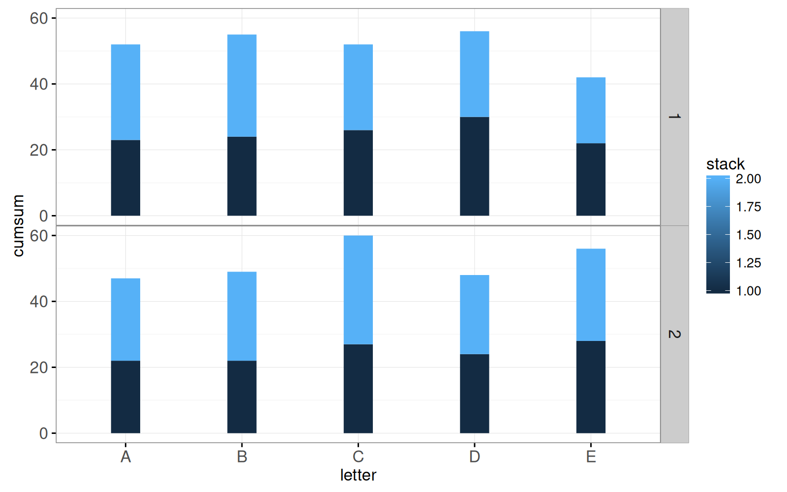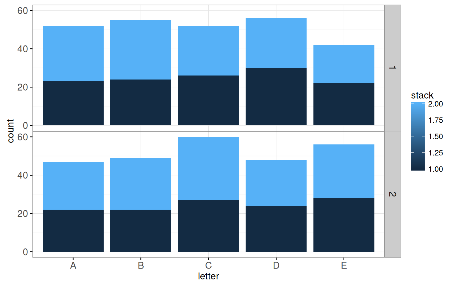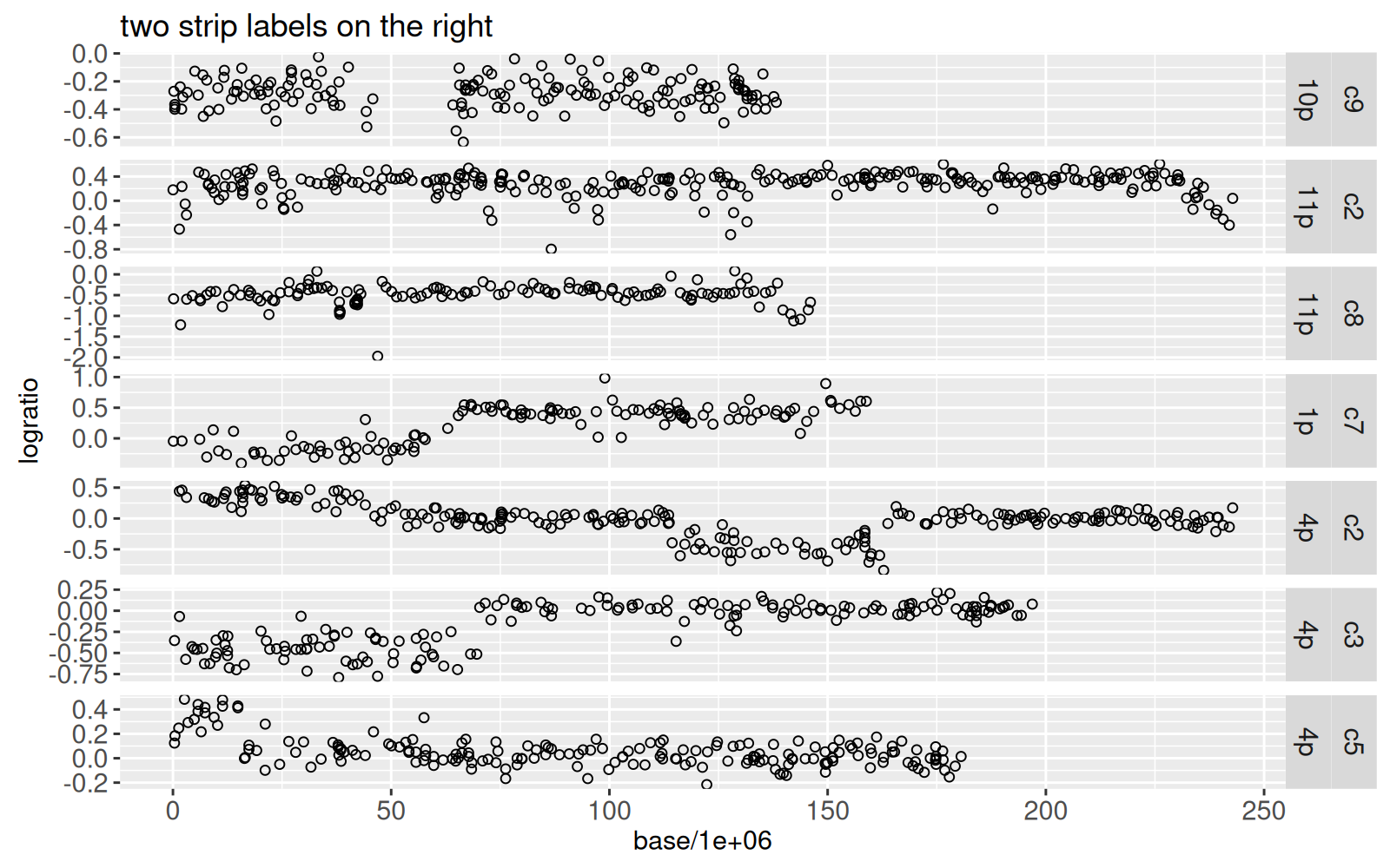 Par exemple, le ggplot ci-dessous utilise deux variables pour créer des facettes verticales, ce qui se traduit par deux étiquettes de bande lorsqu'elles sont générées avec `ggplot2`.